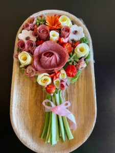 We at Bobby’s Bagel Cafe offer a cupcuterie with an assortment of meats, cheeses, fruits, and condiments. It’s up to you to decide what you would like to add on your cupcuterie. It is the perfect gift for the host or hostess of a party, and is a great way to serve your guests.